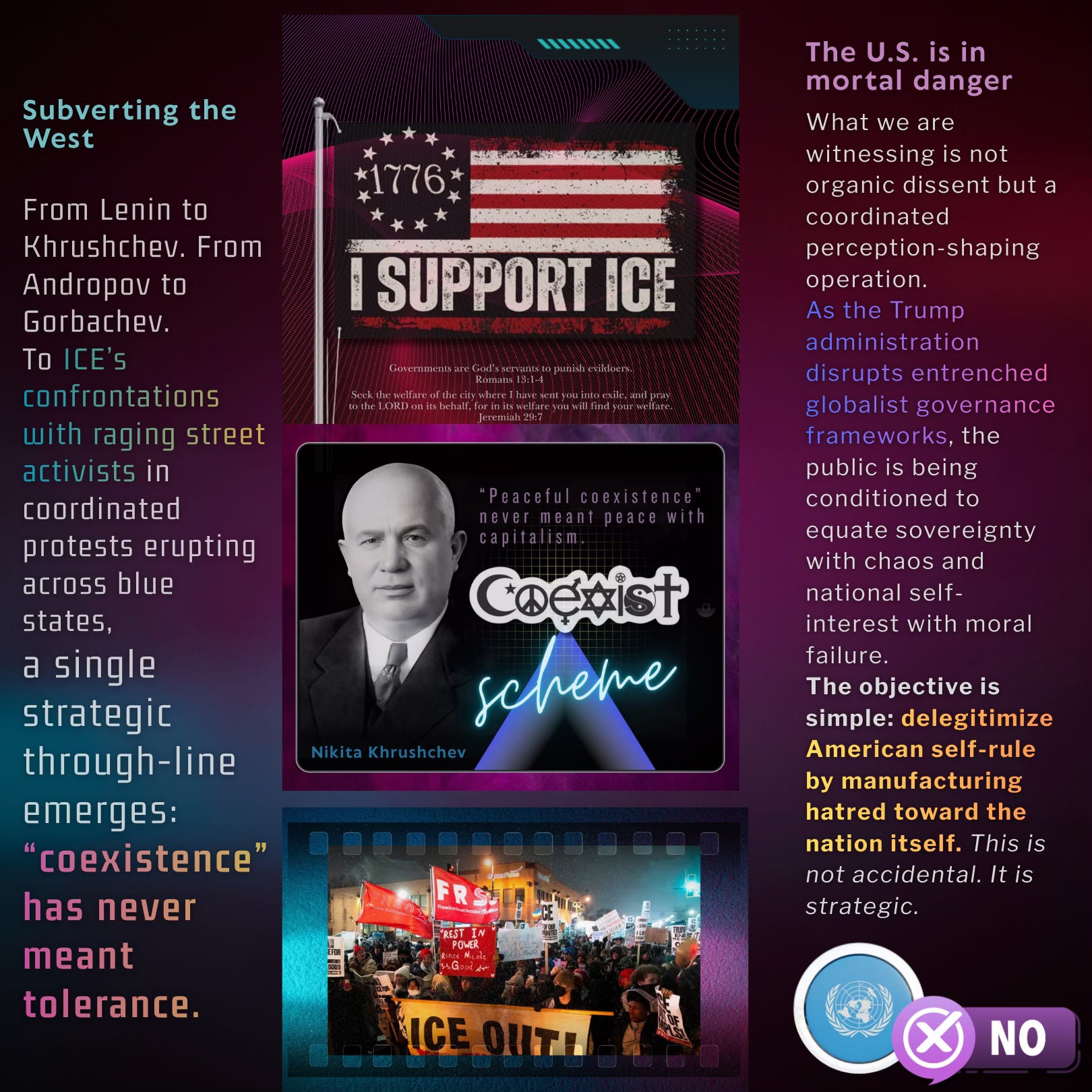 The United States now stands at a genuine point of civilizational risk. What threatens this nation is not merely policy disagreement or partisan division, but an organized ideological project—globalist, collectivist, and openly hostile to national sovereignty, constitutional order, and God-given liberty. Communism no longer marches under red flags alone; it advances through institutions, NGOs, bureaucracies, courts, and moral language that disguises domination as compassion and control as justice.