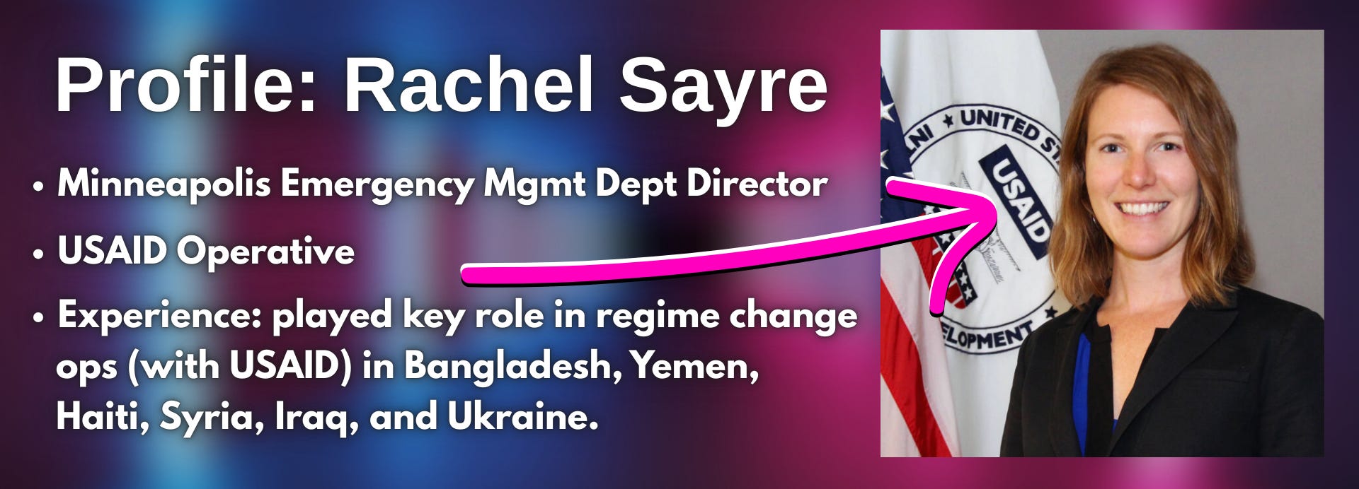 Framing: Minneapolis EMS Chief (former USAID operative) reveals her background in Yemen, Haiti, Syria, Iraq, and Ukraine - essentially admitting she’s a professional regime-change operator now deployed domestically